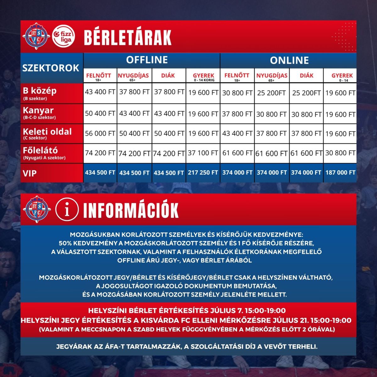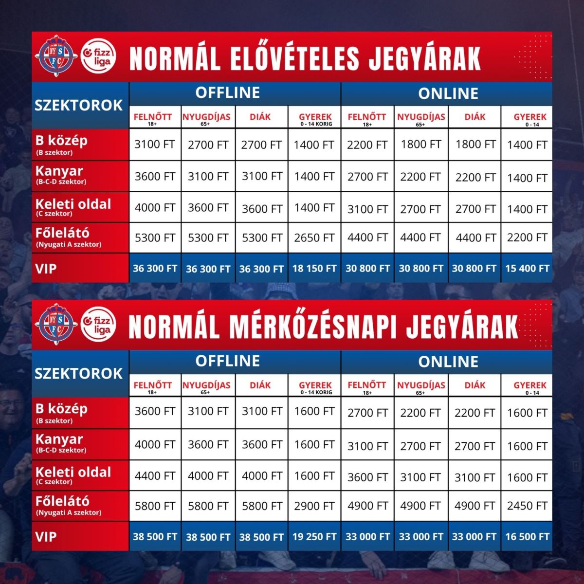 Jegy és bérletárak a 2025/2026-ös szezonban